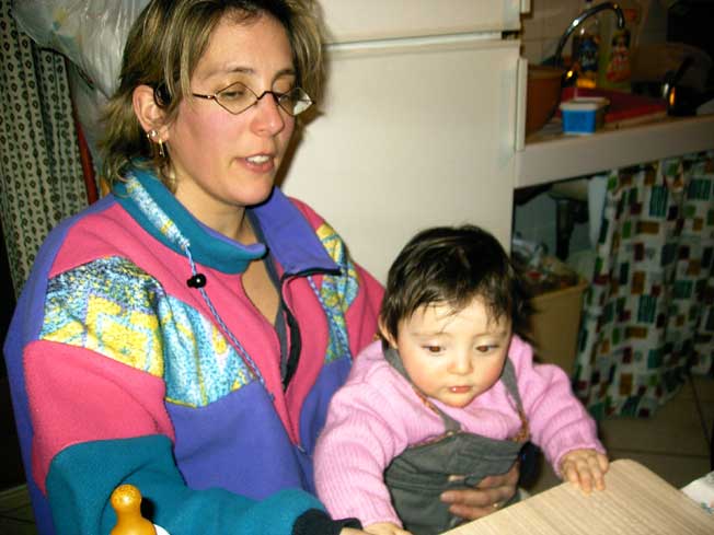 Manon aussi rit bien en jouant pendant le repas |