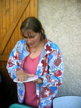 Laurence reçoit une assiette en marbre de Carrare pour son anniversaire et elle apporte |
